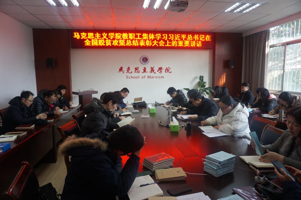2月27日下午,学院召开教职工大会传达学习校2021年党政工作要点并集体学习习近平总书记在全国脱贫攻坚总结表彰大会上的重要讲话。