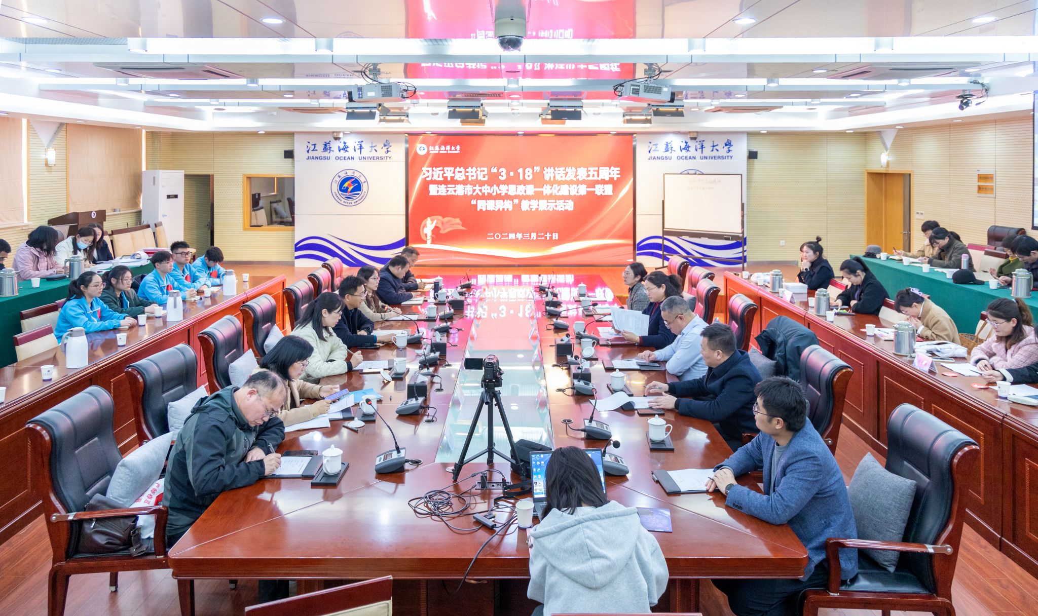 为贯彻习近平总书记“3·18”重要讲话精神,全面落实立德树人根本任务,深化大中小学思政课一体化建设,3月20日下午,连云港市大中小学思政课一体化建设第一教育联盟“同课异构”教学展示活动在我校会议中心东海厅举行。市委教育工委副书记、连云港市大中小学思政课一体化建设指导委员会副主任委员林田海,校党委常委、副校长、连云港市大中小学思政课一体化建设指导委员会副主任委员金芙蓉,市委宣传部宣传处处长、连云港市大中小学思政课一体化指导委员会专家指导组组长马漫利,校党委常委、宣传部部长王波,连云港市教育科学研究所教授、连云港市大中小学思政课一体化指导委员会专家指导组副组长姚玉琴,江苏省新海高级中学正高级教师、连云港市大中小学思政课一体化指导委员会专家指导组成员武兴华,灌南县实验中学党工办主任戴家桂出席活动并担任评委,我院全体思政课教师观摩学习,活动由我院院长、连云港市大中小学思政课一体化指导委员会专家指导组组长沈春梅主持。