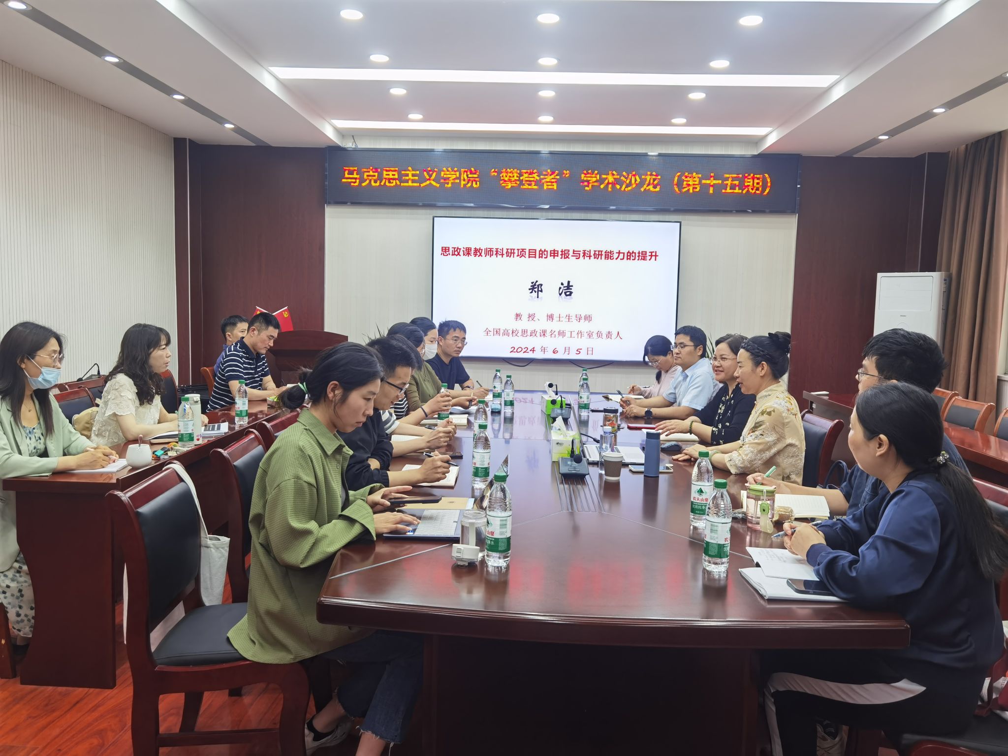 6月5日上午,我院第十五期“攀登者”学术沙龙在学院会议室举行。本期活动邀请安徽工业大学马克思主义学院院长、教授、博士生导师郑洁作“思政课教师科研项目的申报与科研能力的提升”主题报告。活动由院长沈春梅主持,全体年轻博士参加。