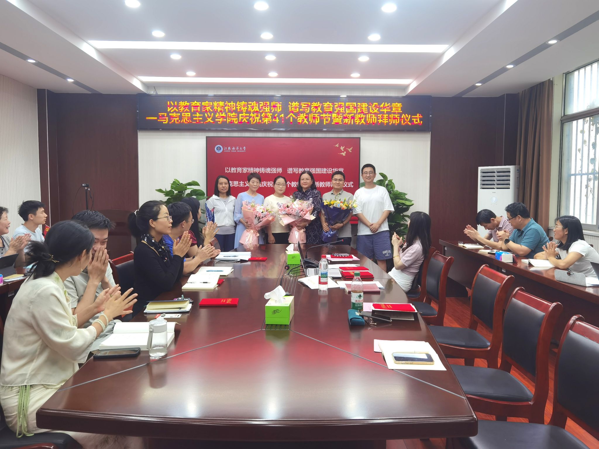 秋韵荡漾,硕果飘香。为弘扬尊师重教风尚,激励全院教师践行教育家精神,投身教育强国伟大事业,9月10日下午,我院以“以教育家精神铸魂强师,谱写教育强国建设华章”为主题举行庆祝第41个教师节暨新教师拜师会。我院教师齐聚一堂,表彰先进、传承薪火,共庆自己的节日。会议由我院副院长崔家新主持。