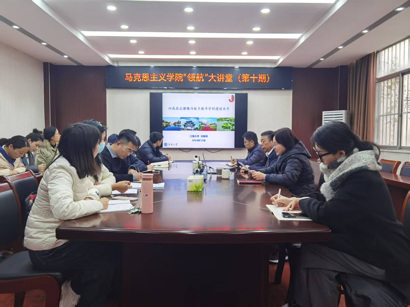 12月11日上午,江南大学马克思主义学院二级教授、博士生导师刘焕明做客我院第十期“领航”大讲堂,在学院会议室为我院年轻博士作《以高层次课题为抓手提升学科建设水平》主题报告。报告由我院院长沈春梅主持。