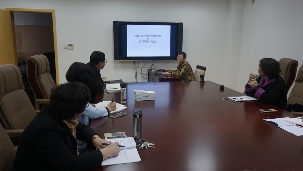 接下来,李秀芸老师为大家做了《近代救国道路的早期探索之太平天国农民起义》的教学展示。李老师从太平天国运动的爆发、失败及原因分析,跟大家一起回顾了近代农民阶级参与探索救国之路的艰辛历程。李秀芸老师执教多年、教学经验丰富,具有良好的专业素质和教学水平。她教态亲切自然,诙谐幽默,具有很强的感染力,引得现场阵阵掌声。