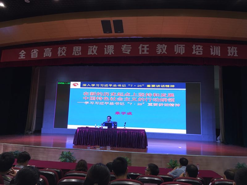 为深入贯彻落实全国、全省高校思想政治工作会议精神和教育部《2017年高校思想政治理论课教学质量年专项工作总体方案》,进一步提高全省高校思想政治理论课教师思想政治素质和教育教学水平,中共江苏省委宣传部、江苏省教育厅联合举办了全省高校思想政治理论课专任教师培训班。8月14日至25日,我校马克思主义学院全体教师分两批赴南京航空航天大学、苏州大学、扬州大学、江苏师范大学四个培训点参训。