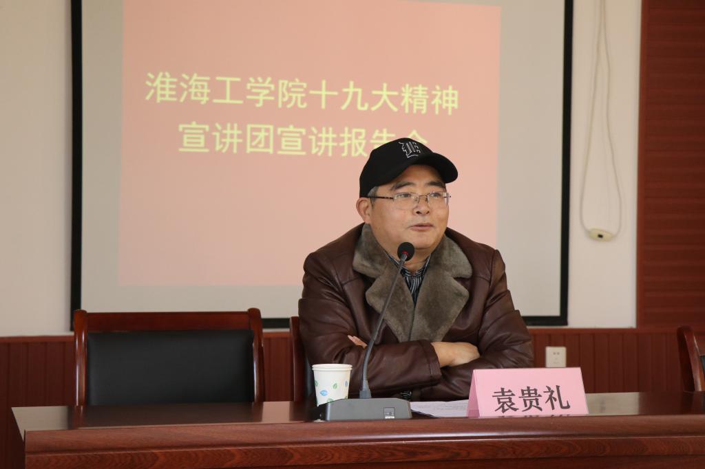 最后,淮海工学院十九大宣讲团成员袁贵礼作十九大精神专题宣讲报告。教授紧扣党的十九大报告,紧紧围绕习近平新时代中国特色社会主义思想这个主线,深入浅出地从新成就、新时代、新思想、新征程四个方面,全面系统而又突出重点地解读了十九大报告核心思想和主要内容,让与会人员进一步加深了对党的十九大精神的理解和把握。大家纷纷表示,回去后将认真学习十九大精神,切实提高思想认识,并积极运用到工作实践中去,为中国梦的早日实现努力奋斗。