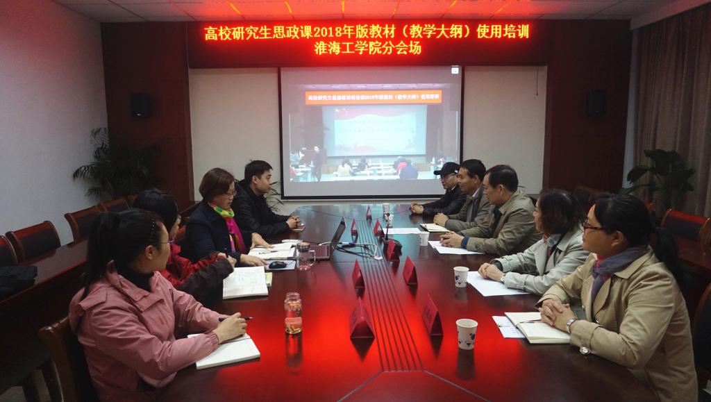 为帮助教师准确把握高校研究生思想政治理论课2018版教材(教学大纲)的指导思想和基本精神,在教学中切实用好新教材,根据教育部教材局《高校研究生思想政治理论课2018版教材(教学大纲)使用培训的通知》, 11月6日上午,研究生思想政治理论课2018版教材(教学大纲)使用培训我校分会场开班仪式在马克思主义学院会议室举行,校党委副书记史顺良、马克思主义学院党政领导和研究生思想政治理论课任课教师参加了此次开班仪式。