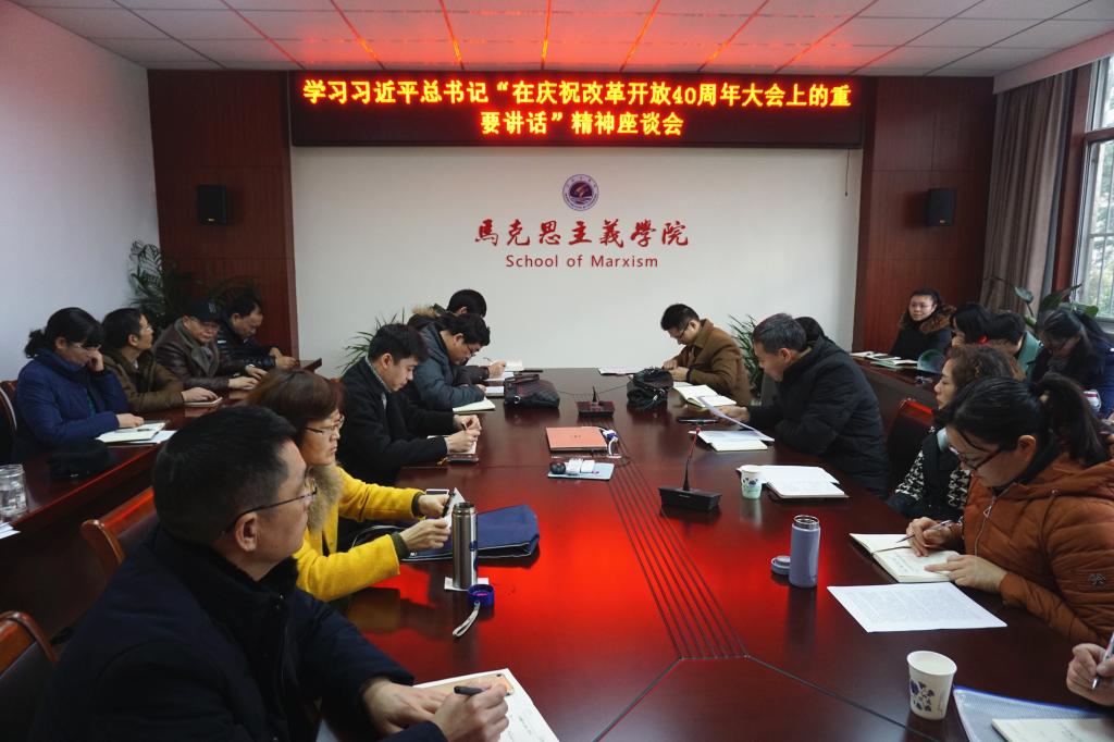 12月19日下午,我院组织全体教职工集中学习习近平总书记在庆祝改革开放四十周年大会上的重要讲话精神。学院党总支书记张学武主持会议。