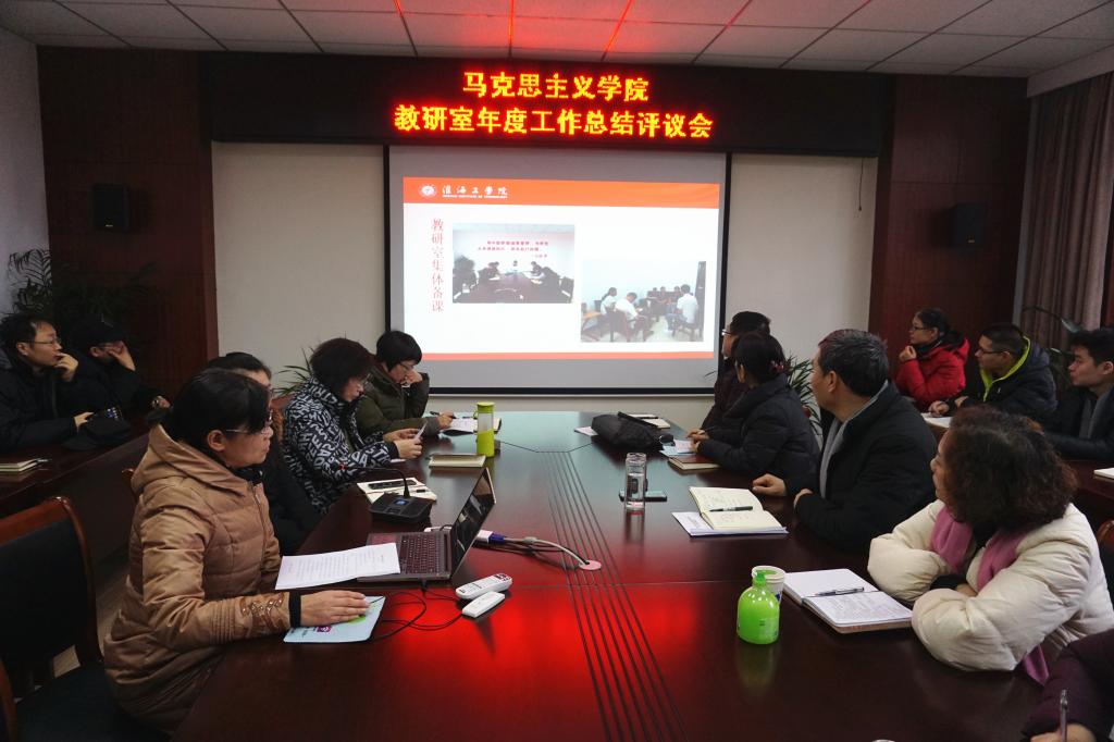 会上五个教研室主任分别就各自教研室2018年度工作任务的完成情况、工作中存在的问题、2019年工作的初步打算以及教研室主任自身履职尽责情况进行了汇报交流。每个教研室着重展示了2018年度在课堂教学、实践教学、教学科研、社会服务等方面取得的成绩, 《概论》课教研室的多元课堂教学模式异彩纷呈、《思修》课研室的实践教学全员化改革成果丰硕、《纲要》教研室的情景剧教学法让人耳目一新。