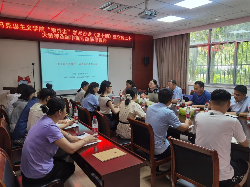 8月9日上午,我院邀请南京师范大学马克思主义学院院长王刚教授做客第十期“攀登者”学术沙龙。王刚教授以“学习党的二十大精神,做好研究选题工作”为题,分享了自己在国家社科基金等课题申报上的经验。我院在连博士及江苏财会职业学院的相关教师参加线下会议,其余教师以腾讯会议形式参会。报告由我院党总支书记王波主持。
