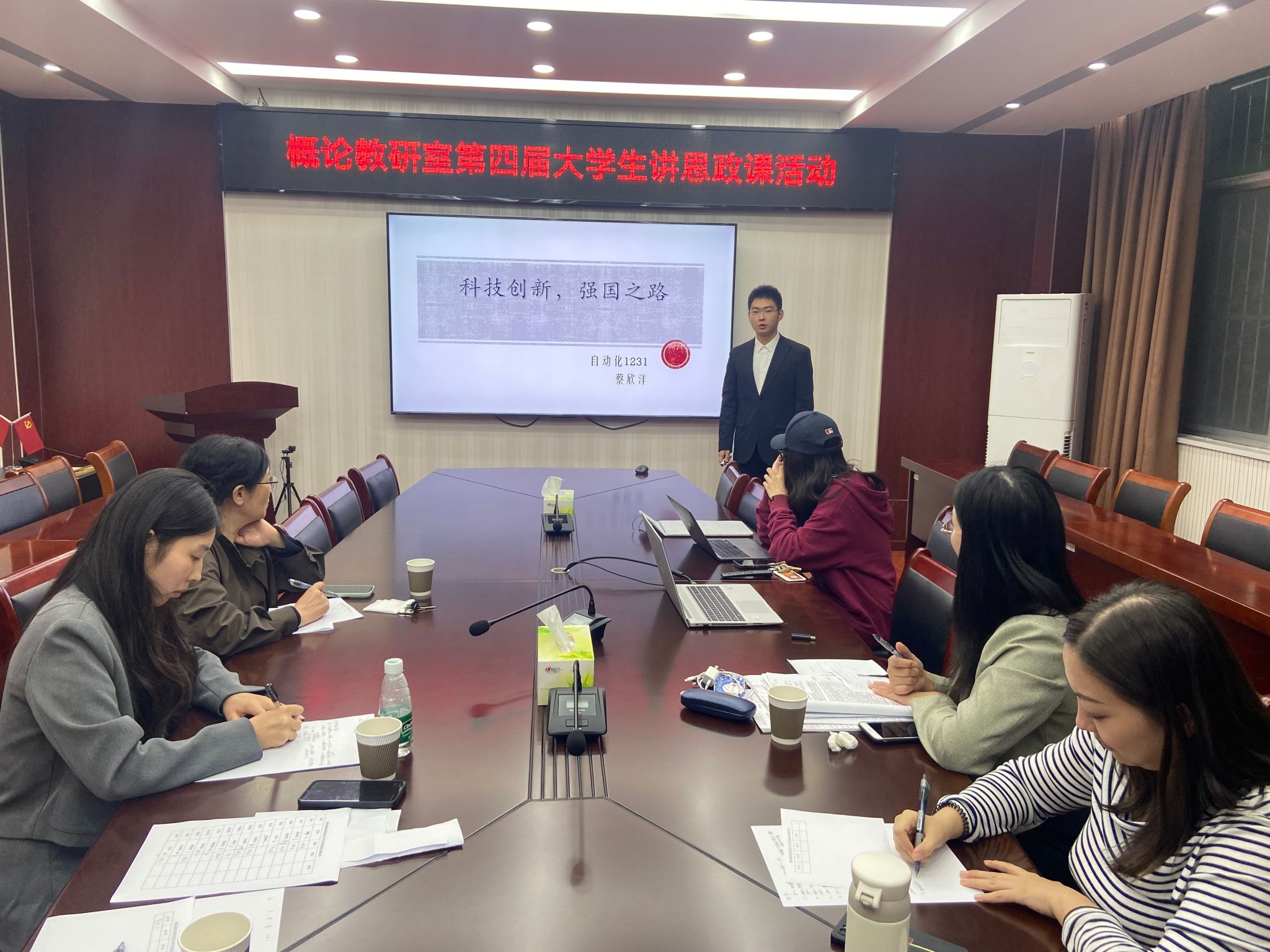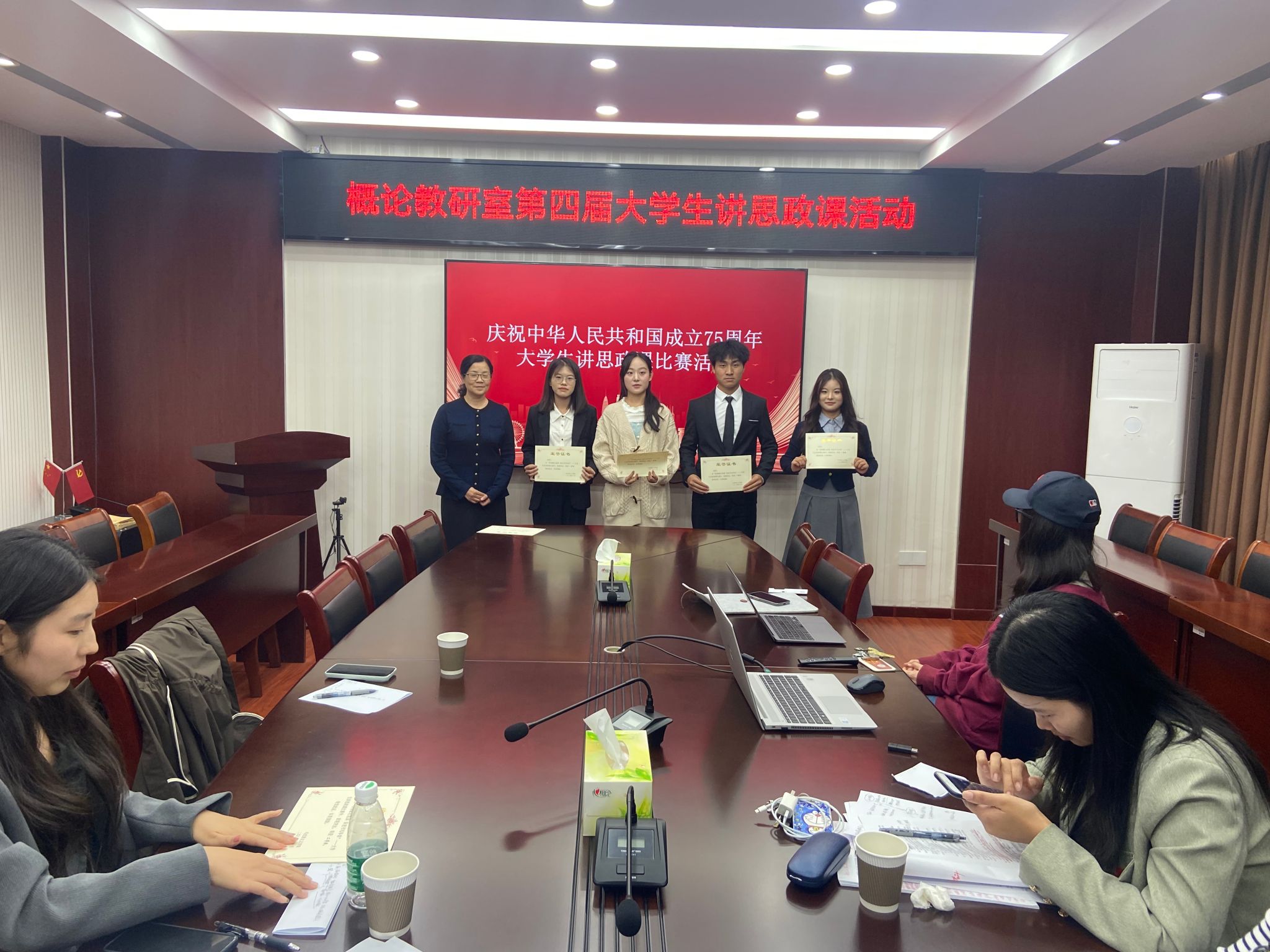 为深入贯彻习近平总书记关于学校思政课建设的重要指示精神,学习宣传贯彻党的二十届三中全会精神,以习近平新时代中国特色社会主义思想为指导,培养和塑造青年学生,10月9日下午,毛泽东思想和中国特色社会主义理论体系概论教研室在学院会议室举办了以“青春献礼祖国,奋进书写华章”为主题的庆祝中华人民共和国成立75周年大学生讲思政课比赛活动。周桂芹、王珩、王泉月、李文慧、任倩倩等教师担任本次比赛的评委。
