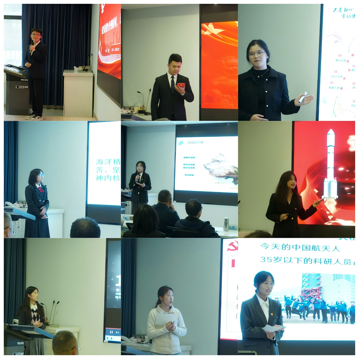 进入决赛的10位同学围绕“回望祖国辉煌75载,青年共筑爱国梦”的主题现场讲授思政课。他们或是围绕载人航天精神、长征精神等中国共产党人的精神谱系解读中国共产党的成功密码;或是结合中国桥梁、中国北斗的发展历程阐述新中国成立以来的发展成就;或是聚焦海洋强国、海洋精神探讨新时代青年的责任与担当;或是结合中国共产党全面从严治党的历程谈大学生党风廉洁意识的培育。参赛选手精神饱满、准备充分、展示技巧多样,为现场观众带来了一堂别开生面的思政课,频频博得热烈掌声。