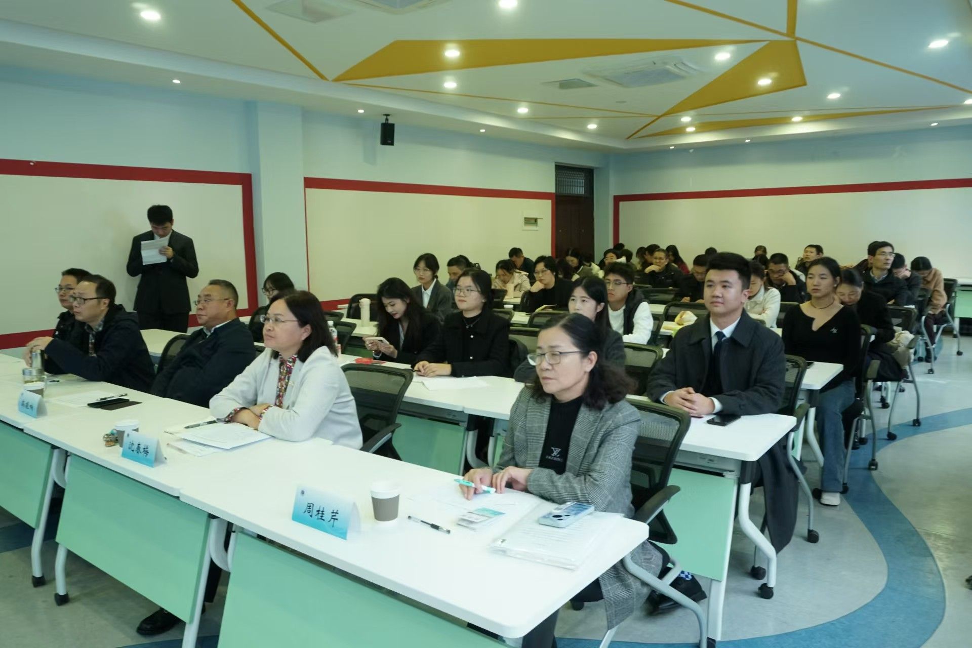 11月15日下午,庆祝新中国成立75周年暨第二届“大学生讲思政课”公开课展示活动在苍梧校区文渊楼115举行。我院党总支书记韩振响、院长沈春梅、校党委宣传部宣传科科长英启琛、我院教授周桂芹、王永强等出席比赛并担任评委,部分同学及我院全体教师观摩了比赛。