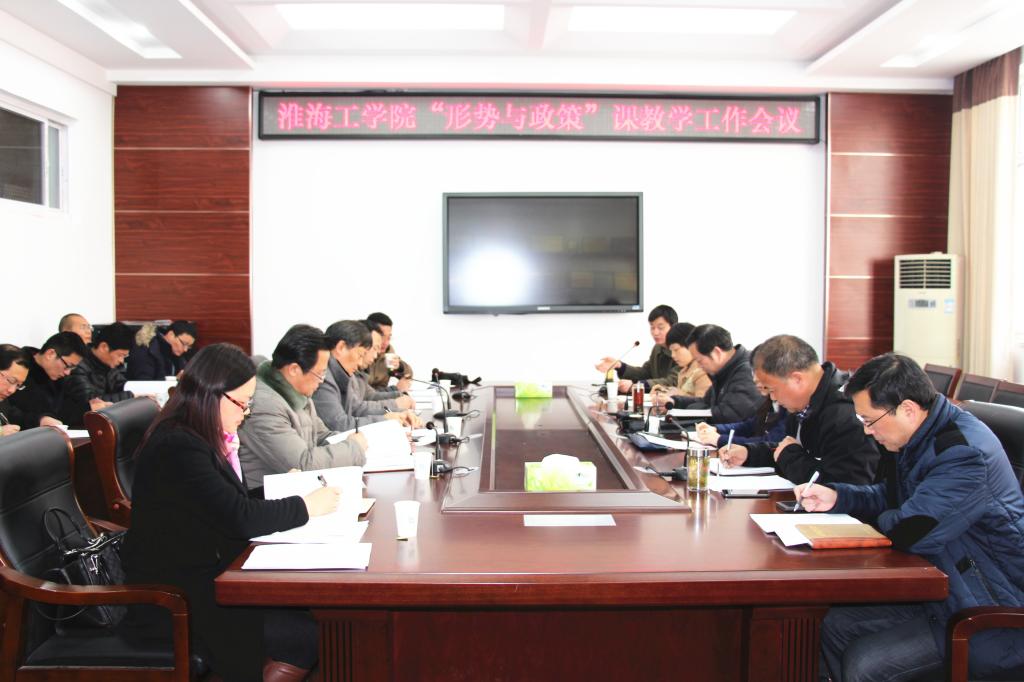 会上,陈兴发副院长介绍了学校“形势与政策”课建设的现状以及该课程目前存在的一些问题,并简要分析了原因。金芙蓉部长宣读了我校“形势与政策”课教学改革领导小组成员名单。思政系副主任沈春梅老师就《淮海工学院2015-2016学年第二学期“形势与政策”课教学安排意见》作了简要说明。在会议讨论阶段,“形势与政策”课任课教师刘平昌、周清华、朱凌云等同志就集体备课制度、教学经费保障、教学内容安排、师资队伍建设等方面提出了很好的建议。