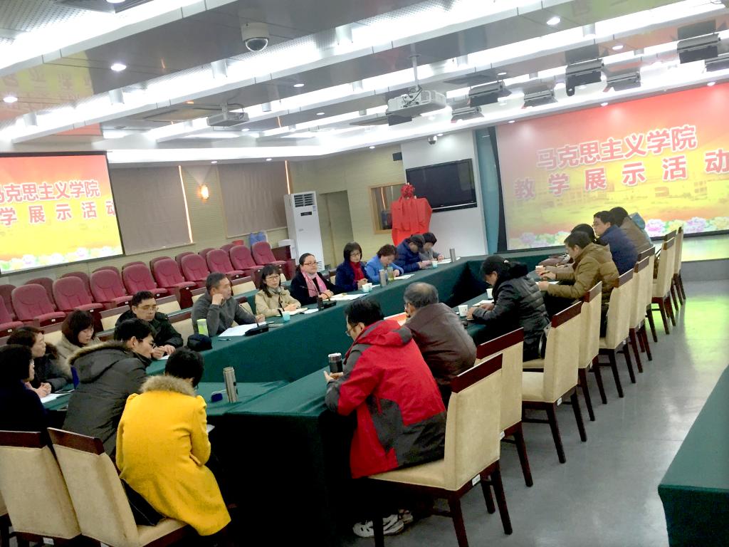 本次教学展示活动分教学展示和评议两个环节,首先进行展示。袁贵礼教授教学展示的题目为:《职业道德之三重境界》,他在对课堂设计作了说明后,从三重道德境界的比较,引导学生开展课堂讨论,并以美团CEO王兴和滴滴打车CEO程维等人为例,教育启发学生守住职业底线、提升职业能力、追求乐业境界,快乐着、幸福着成功,最后,袁贵礼教授以网络搜索—张小龙成为“微信之父”的历程,作为课后作业结束了课堂展示。随后,王永强教授以“走进马克思”为题进行了教学展示,王教授首先强调,教师要努力成为教科书的主人,教师要熟练驾驭教科书,做到为我所用,然后,他从马克思主义是‘假大空’吗;马克思主义理论有何用;中国人民为何选择马克思主义等三个方面,以生动活泼的语言、耳熟能详的事例,深入浅出地进行了课堂阐释。两位老师风格各异的课堂教学、精湛熟练的教学艺术、严密有序的课堂组织及生动活泼的课堂气氛,既很好地诠释了课程丰富的文化内涵,又彰显了富有个性的教学思想和人格魅力,都给老师们留下了深刻的印象。