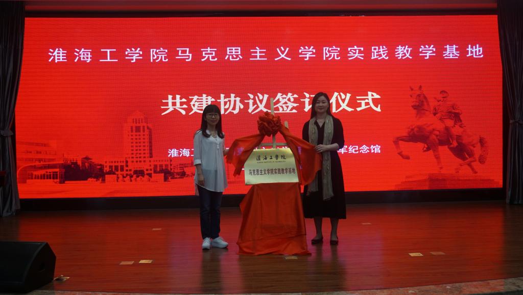 张学武和铁春燕分别代表马克思主义学院和新四军纪念馆在合作协议上签字。金芙蓉和铁春燕分别代表马克思主义学院和新四军纪念馆为马克思主义学院思政课社会实践教学基地揭牌。