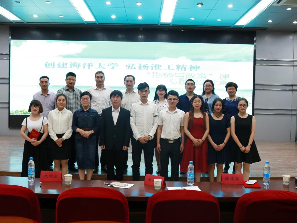 为响应我校“江苏海洋大学”的创建活动,激发学校师生的主人翁意识,由我院牵头,联合党委宣传部、校团委共同开展的“创建海洋大学,弘扬淮工精神”“形势与政策”课专题演讲比赛决赛于5月16日晚在艺术楼报告厅圆满结束。学校党委副书记、纪委书记史顺良,宣传部、团委及我院的负责人应邀出席并担任比赛的评委。