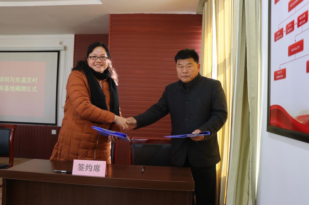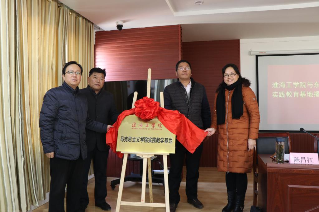 随后,学院与东温庄村签约共建淮海工学院马克思主义学院实践教学基地协议,并共同为实践教学基地揭牌。