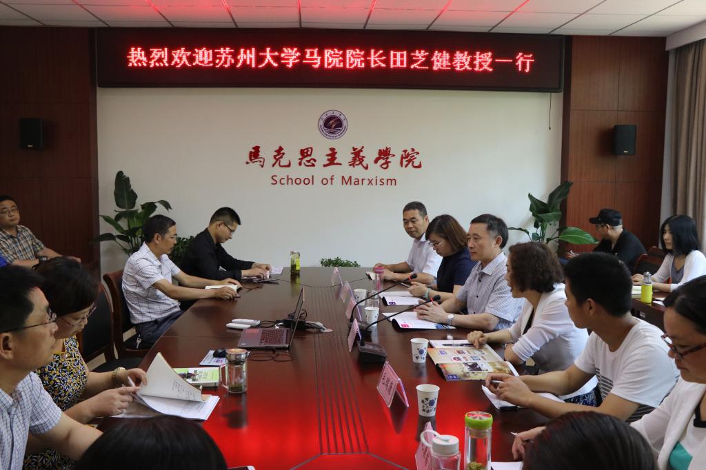 田芝健院长主要围绕马克思主义理论学科建设、科学研究与地方经济社会发展、马克思主义理论的传播、教学科研人才队伍建设等几个方面的问题进行了详细阐释。他还就双方科研合作、师资队伍建设、共建实践教学基地、校内协同校际合作、思政课教学改革等提出了很多很好的建议。