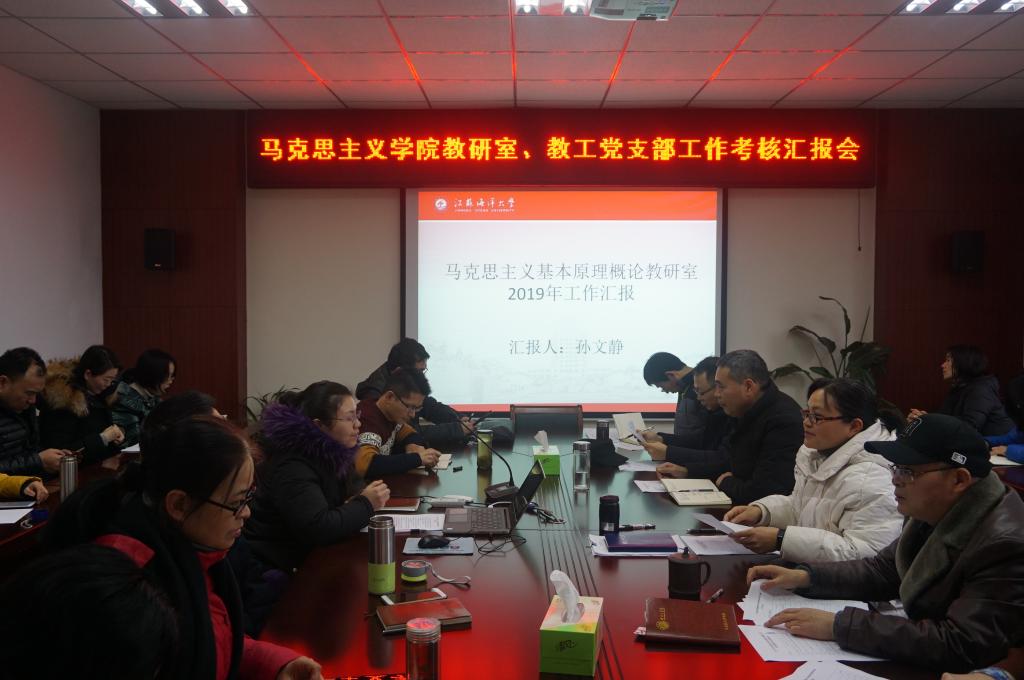为进一步总结2019年工作,明确工作中的不足及努力方向,1月8日下午马克思主义学院组织召开了2019年党支部及教研室工作考核汇报会,两个教工党支部、五个教研室进行了工作汇报,马克思主义学院全体教师参加了汇报会。