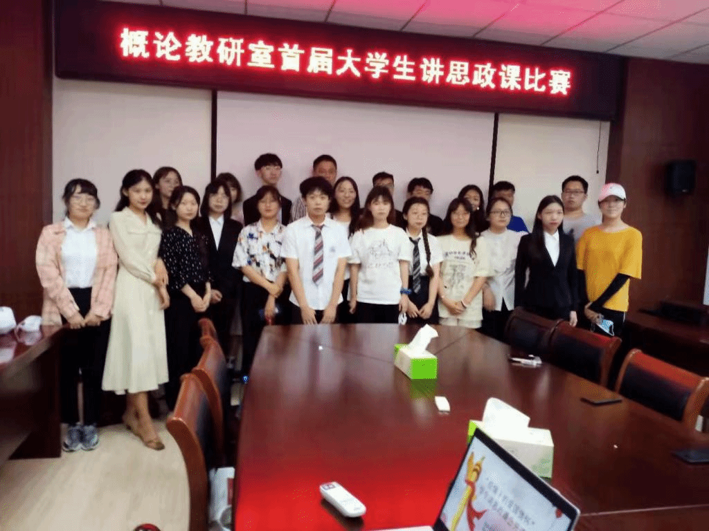 为全面推动习近平新时代中国特色社会主义思想进教材进课堂进头脑,6月14日下午,毛泽东思想和中国特色社会主义理论体系概论教研室在文渊楼133举办“疫情下的爱国情怀”——大学生讲思政课比赛活动。周桂芹、朱凌云、潘晶芳、王珩等教师担任本次比赛评委。