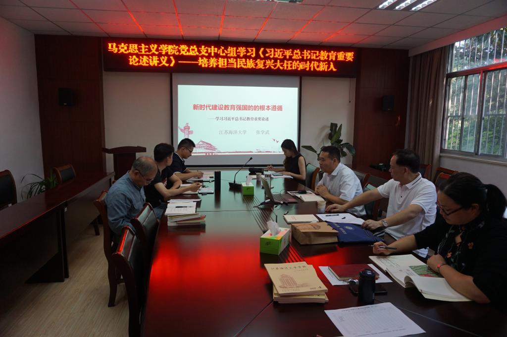 9月30日下午,马克思主义学院党总支理论学习中心组集中学习《习近平总书记教育重要论述讲义》,就其中的“培养担当民族复兴大任的时代新人——坚持立德树人作为根本任务”进行专题学习研讨。马克思主义学院党政领导、党总支委员、教工党支部书记参加了学习,校党委副书记史顺良旁听了学习会。会议由马克思主义学院党总支书记张学武主持。