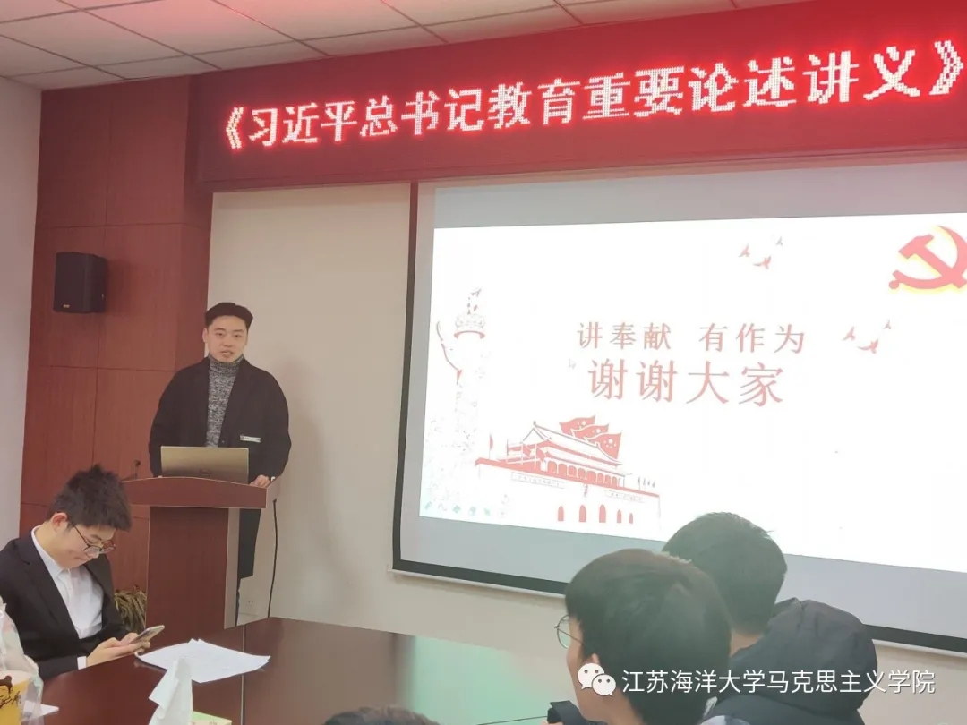 为加强同学们对习近平总书记教育重要论述的理解,11月29日下午3时,《习近平总书记教育重要论述讲义》读书分享会在苍梧校区文渊133顺利举行。出席本次分享会的评委有:校团委副书记王泉月老师、马克思主义学院党政办主任崔家新老师、马原教研室主任孙文静老师。