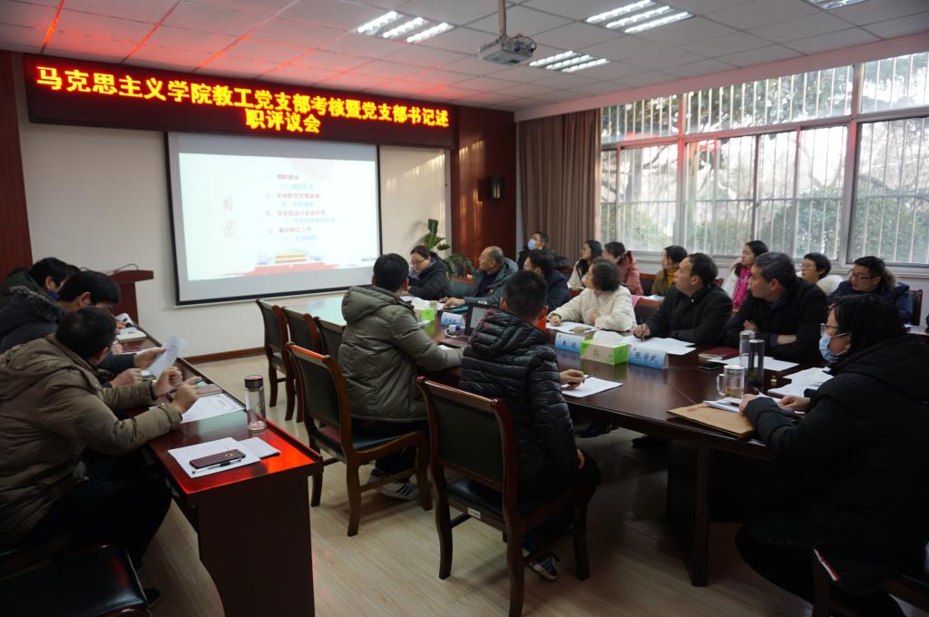 1月13日下午,我院组织召开2020年党支部工作考核暨党支部书记述职评议会,校党委常委、宣传部部长杨雪英,校纪委副书记、纪委办公室主任汪守建,外国语学院党委书记王波、艺术设计学院党委书记李春参加考核会并担任评委,全体党员参加考核会,考核会由学院党总支书记张学武主持。