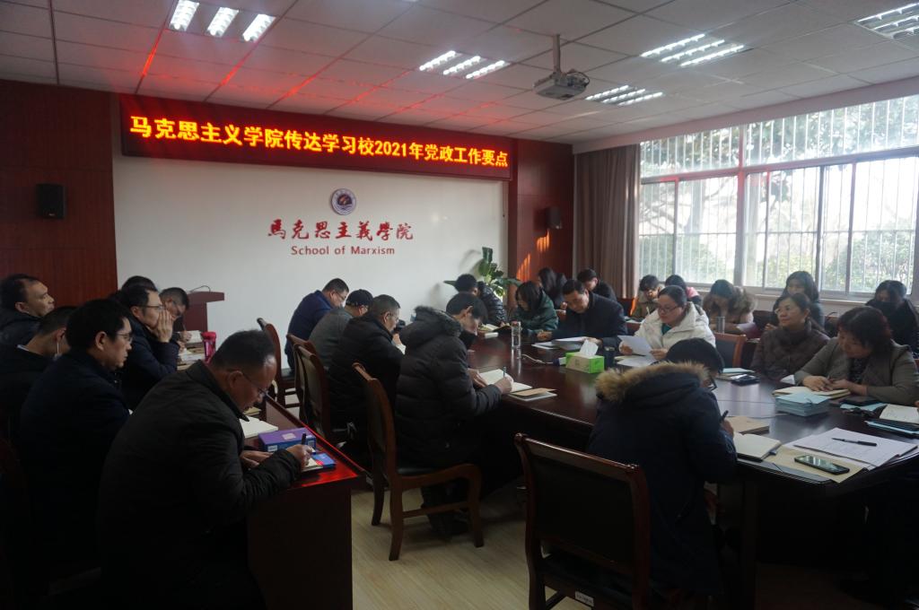 2月27日下午,学院召开教职工大会传达学习校2021年党政工作要点并集体学习习近平总书记在全国脱贫攻坚总结表彰大会上的重要讲话。