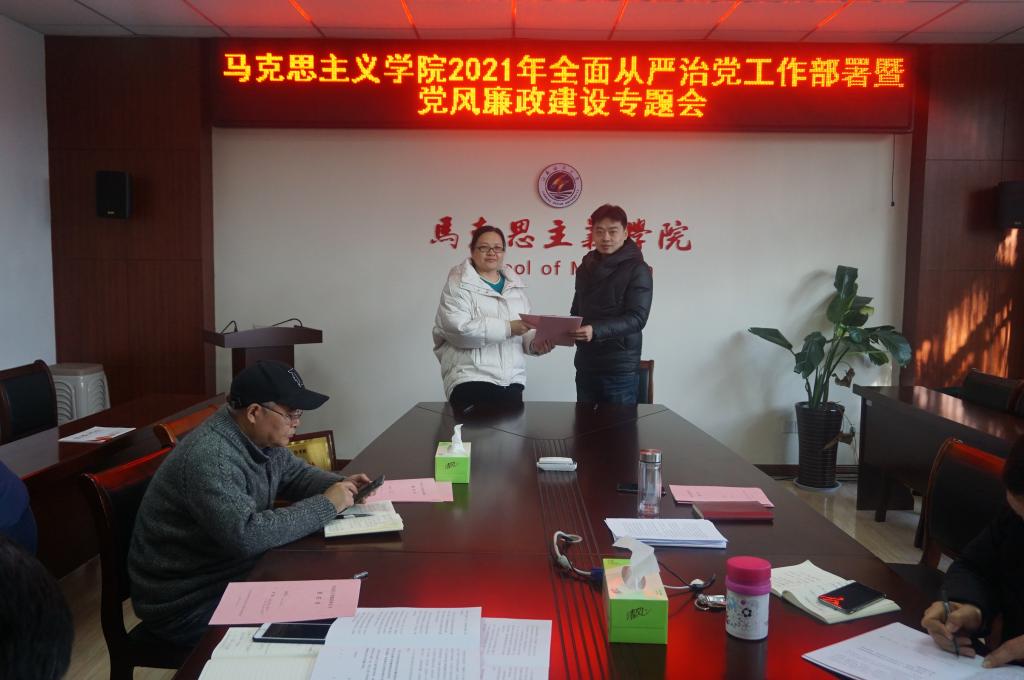 会上,张学武首先传达了校全面从严治党工作会议精神,强调今年的全面从严治党工作要紧紧围绕校2021年党政工作要点中的重点工作和主要工作展开,依托《江苏海洋大学全面从严治党责任清单(修订版)》,做好规定动作,创新自选动作,以党的政治建设为抓手,创新党建工作方法,补齐党员发展短板,全力发挥党支部的战斗堡垒作用。同时,积极落实巡视巡察整改工作,完善党风廉政建设责任网络,选树先进典型,切实强化党风廉政建设。