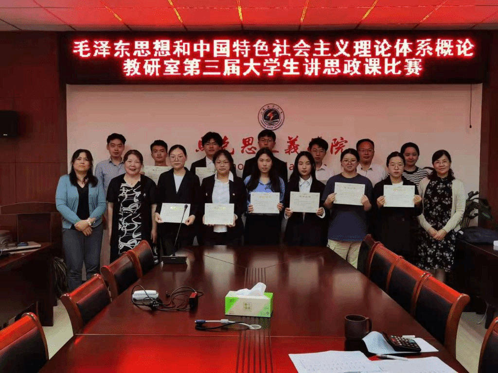 为庆祝中国共产党成立100周年,6月16日晚上,毛泽东思想和中国特色社会主义理论体系概论教研室在文渊楼133举办“苦难与辉煌——我看中国共产党百年历程”——大学生讲思政课比赛活动。周桂芹、朱凌云、王珩、陈忠锋、潘晶芳、王泉月等教师担任本次比赛评委。