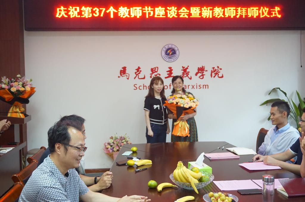值第37个教师节来临之际,9月10日下午,我院举行座谈会,并组织新入职教师拜师仪式。全体教师参加了仪式,仪式由院长沈春梅主持。