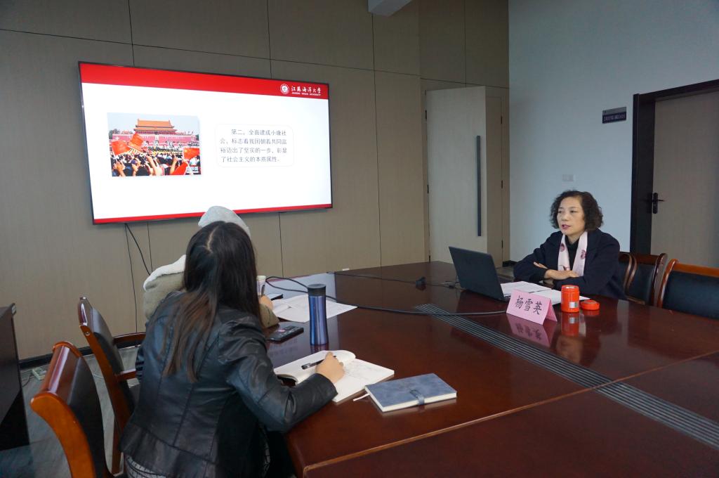 杨雪英部长围绕深刻理解和把握习近平总书记“七一”重要讲话的重大意义、“第一个百年目标”业已实现的庄严宣示、中国共产党一百年的历史和影响、中国共产党百年来创造的“四个伟大成就”和向世界作出的“四个庄严宣告”、贯穿“四个历史阶段”的伟大建党精神以及中国共产党在百年奋斗中积累的“九个必须”的宝贵历史经验、推动历史前进的高度历史自信、历史自觉和斗争精神、“人民万岁的历史唯物主义观点”等八个方面,深入解读讲话提出的一系列新思想、新观点、新论断,对全面建成小康社会的历史性意义、伟大建党精神的深刻内涵和时代价值、以史为鉴开创未来的根本要求和使命任务等内容进行了系统解读。