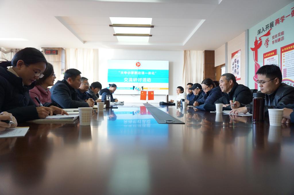 两家单位的领导和思政课老师就思政教学的困惑与痛点、不同学段学生的学习特点、大中小课程衔接以及教学内容选取等问题进行了深入交流,双方协商决定组成“大中小思政一体化”联盟并就建立联合备课、教学观摩、联合研修等落实“大中小思政一体化”长效机制达成一致。