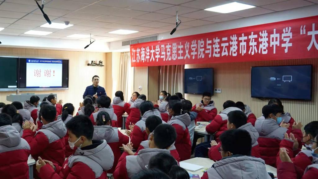 为深入贯彻习近平总书记关于加强学校思政课教学的讲话精神,认真落学校实立德树人根本任务,大力推进我市“大中小思政课一体化”,12月13日,我院党委走进连云港东港中学,携手推进 “大中小思政课一体化”。
