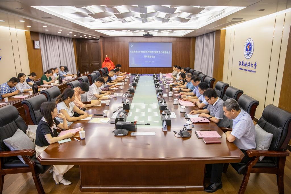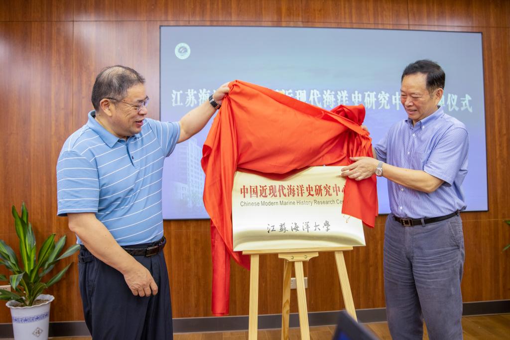 社会科学处处长魏范青宣读同意成立江苏海洋大学中国近现代海洋史研究中心的批复。校党委书记王自力、党委副书记史顺良分别宣读研究中心组成人员名单、颁发聘书并共同为研究中心揭牌。