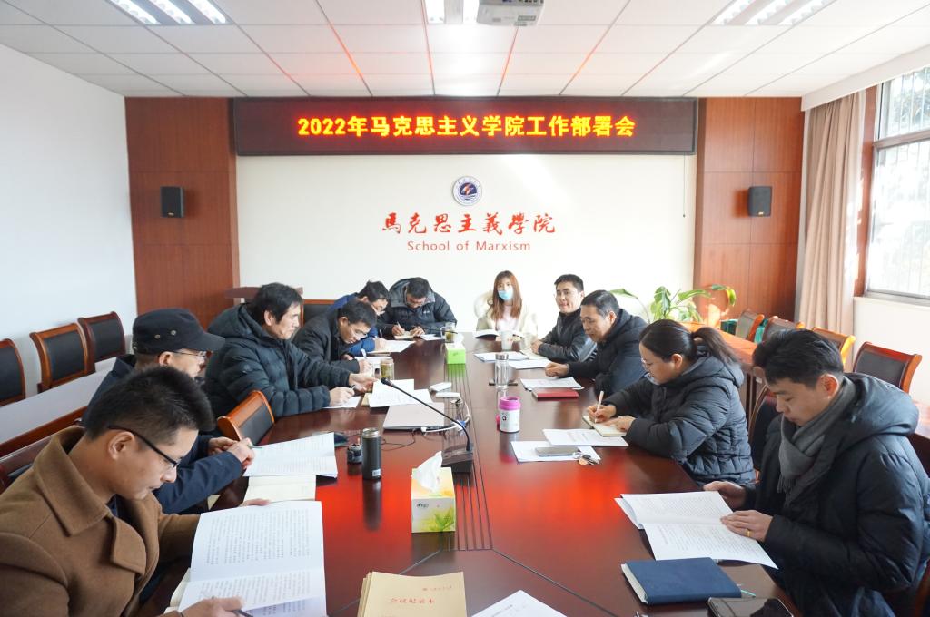 2月23日下午,2022年马克思主义学院工作部署会在我院会议室召开。会议由党总支书记张学武主持,院长沈春梅、副院长崔家新、教工党支部书记、教研室主任及党政办主任出席。