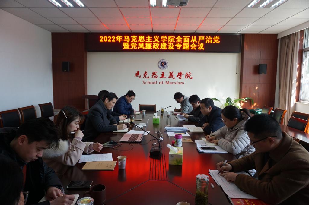 3月2日,我院于会议室召开2022年全面从严治党专题会议,会议由党总支书记张学武主持,院长沈春梅、副院长崔家新、教工党支部书记、教研室主任、党政、教学办公室主任参加。