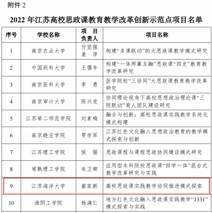 关于公布2022年全省高校示范马克思主义学院及思政课教育教学改革创新示范点项目名单的通知》(苏教社政函〔202