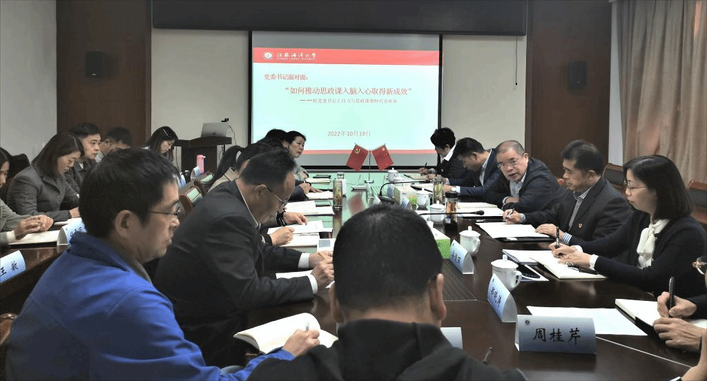 10月19日下午,校党委书记王自力来到我院,与思政课教师代表座谈,共话“如何推动思政课入脑入心取得新成效”,党委组织部、党委宣传部、党委办公室、教务处等部门负责人一同参与座谈。