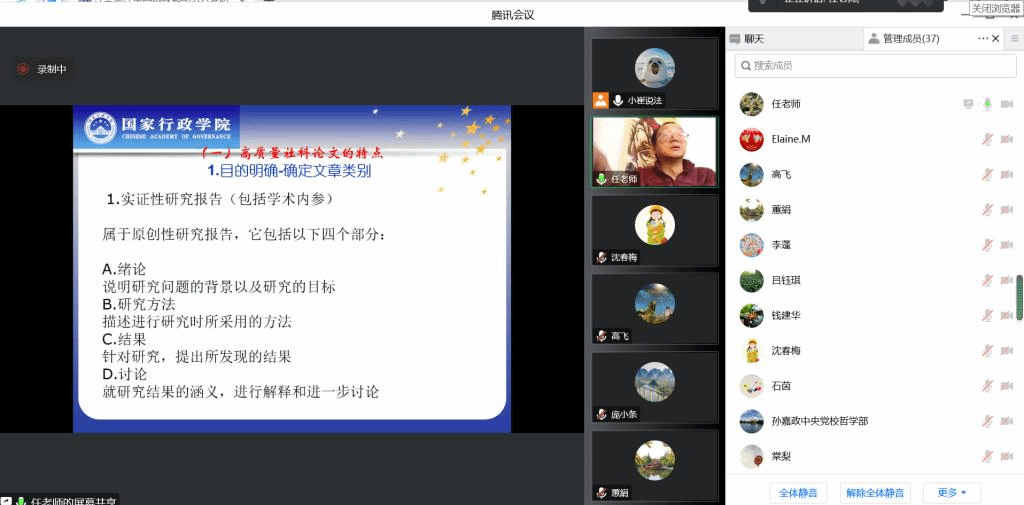 12月8日下午,中共中央党校任俊华教授以腾讯会议的形式做客我院“领航大讲堂”,带来“浅谈高质量社科论文的写作与发表”的辅导报告。报告由我院院长沈春梅主持,我院全体教师参加了报告会。