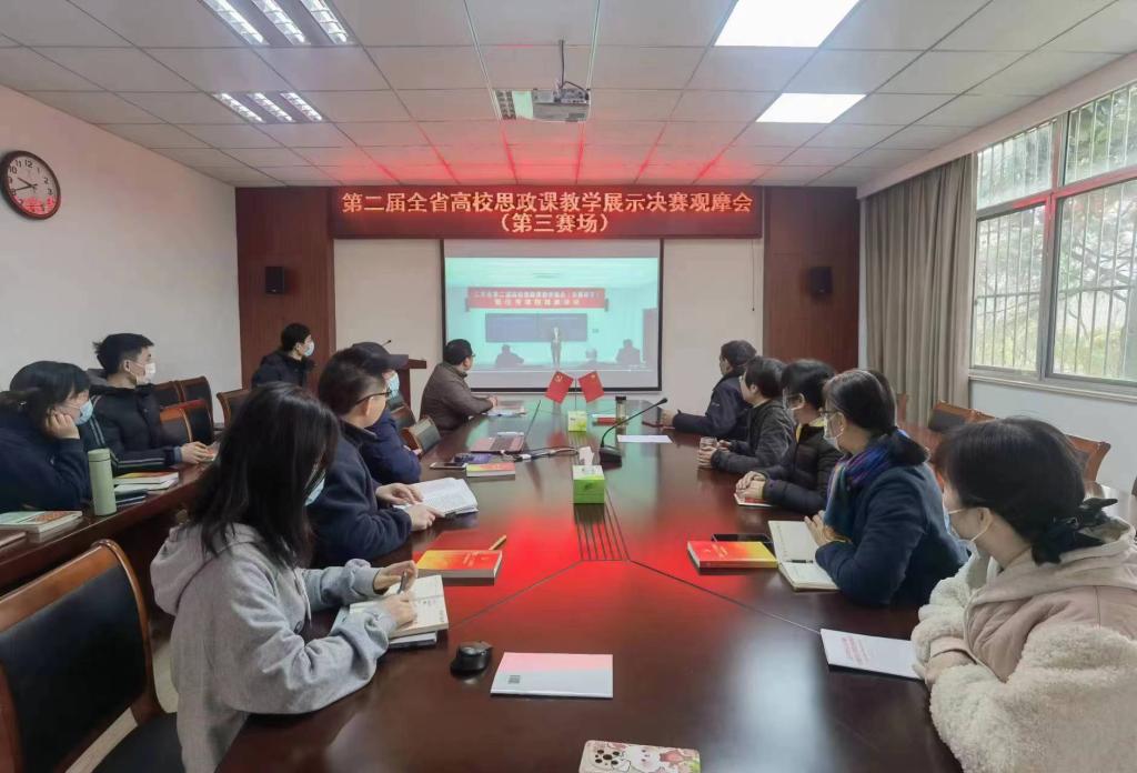 据悉,本次高校思政课教学展示活动2022年11月启动,经各学校推荐、省高校思政课教指委各分课程教指委组织评选等层层选拔,最终58位选手进入现场决赛环节。3月4日,决赛在常州大学举行,根据教学层次及授课课程情况分4个小组进行现场教学展示,并在全省范围同步视频直播,参赛教师随机抽题,无PPT进行现场教学展示,来自北京、上海、山东、浙江、江苏等20名省内外专家担任评委。我院组织全体教师参加了集体线上观摩活动。