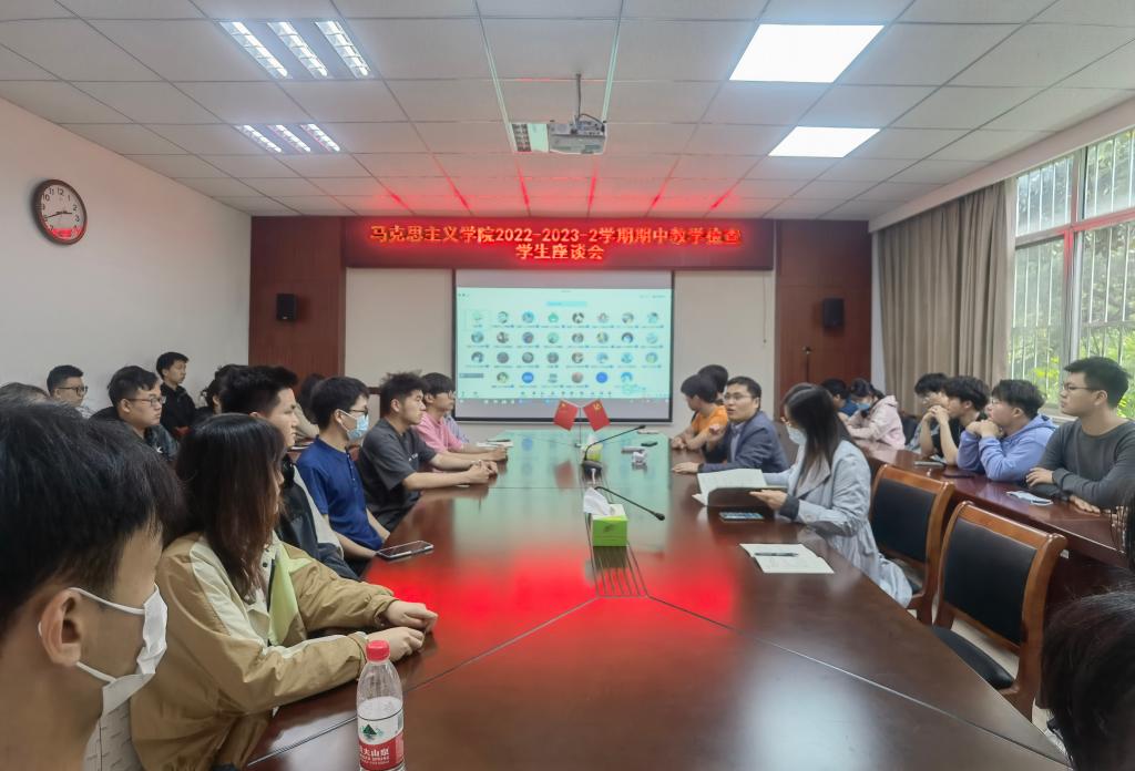 按照学院期中教学检查工作安排,5月6日下午,我院在会议室以线上线下相结合的方式召开2022-2023-2学期期中教学检查学生座谈会。各班学生代表及部分教研室主任参加了本次座谈会,座谈会由副院长崔家新主持。