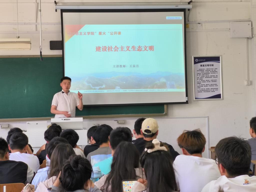 5月8日,在《马克思主义基本原理》的课堂,崔家新老师以“剩余价值的生产”为题,从剩余价值的概念、剩余价值的生产过程、剩余价值生产的两种基本方法等方面对剩余价值生产进行了深入浅出的讲解。5月12日,在《中国近现代史纲要》课堂,倪念念老师以“社会主义三大改造”为题,通过丰富的史料与详实的论证再现了社会主义三大改造的必要性、可能性,并以多媒体视频的方式再现了三大改造的历史过程。5月23日,在《习近平新时代中国特色社会主义思想概论》的课堂,王泉月老师从连云港海洋生态现状以及物种多样性等视角导入“建设社会主义生态文明”课程内容,并结合楼兰古城兴衰等案例讲述尊重自然、顺应自然和保护自然的生态文明理念,在师生有问有答的积极互动中,对习近平生态文明思想进行了深层次的讲解与阐释。