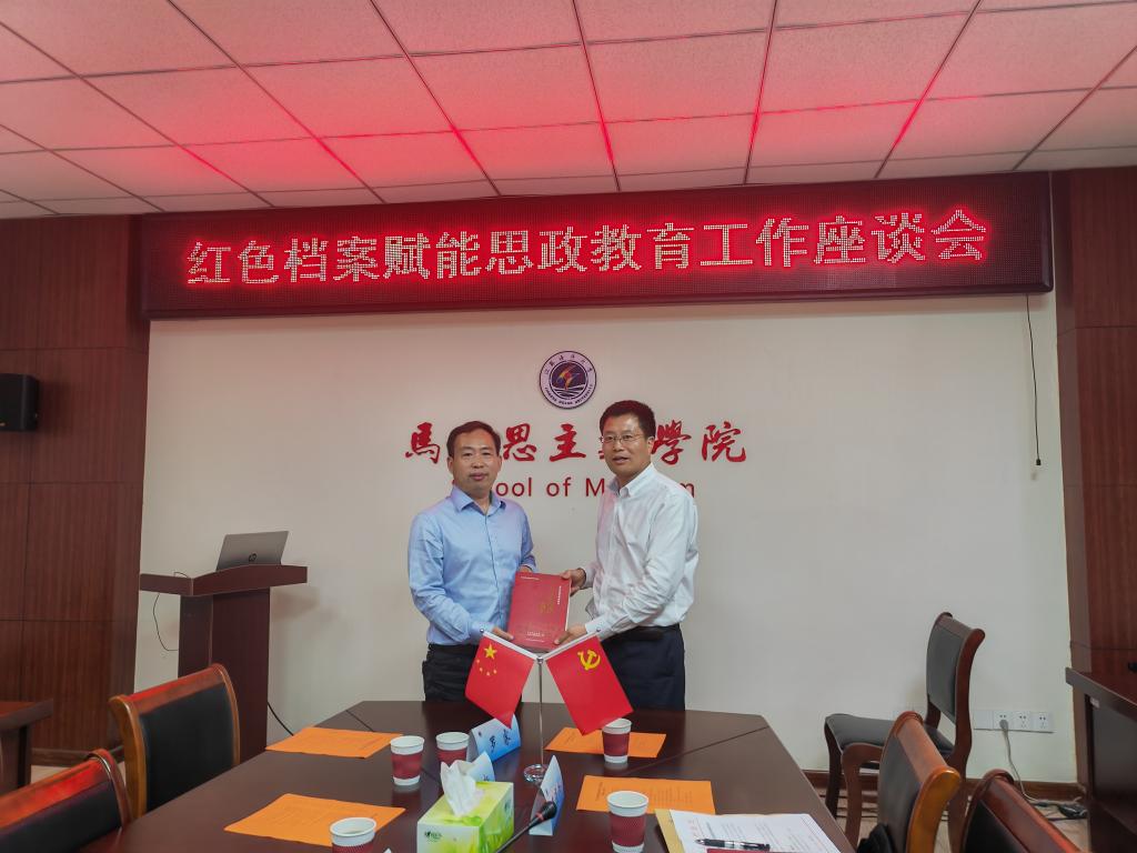 薛春刚和许思文分别代表省市档案馆感谢大家的建议,并向我院捐赠书籍《红色珍档》和《青春百档耀百年》,表示将结合思政课建设需要,积极整合红色档案资源,为赋能思政教育工作作出贡献。