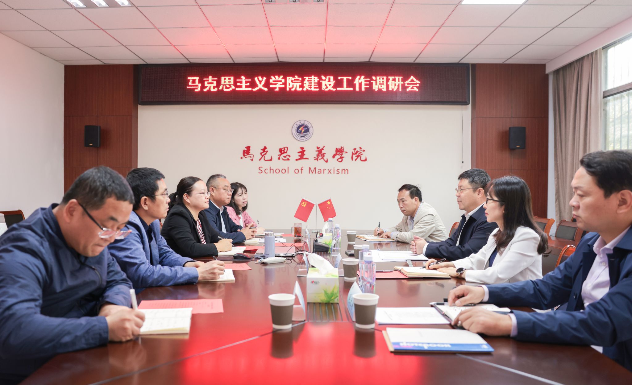 结合学校当前发展实际和《普通高等学校马克思主义学院建设标准(2023年版)》,就加强马克思主义学院建设、加强思政课教学和研究,许峰提出三点意见和要求。一是要把办好思政课作为“立院之本”,持续深化新时代思政课改革创新,积极打造思政“金课”,不断增强育人实效;二是要把建强师资队伍作为“强院之基”,加强教师梯队建设,注重培养培训,强化有组织科研,推出激励措施,打造师德正、教学优、科研强的高水平师资队伍;三是要把加强学科建设作为“兴院之策”,根据学院现有基础和研究特色,凝练学科发展方向,优化学科队伍整体素质,促进课程思政与思政课程同频共振,坚持不懈用党的创新理论铸魂育人。