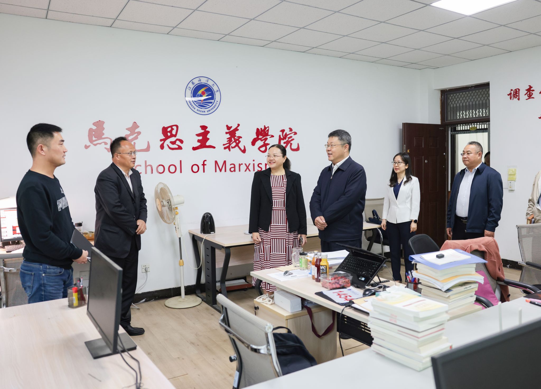 校党委书记许峰、副校长金芙蓉看望正在集体备课的思政课教师