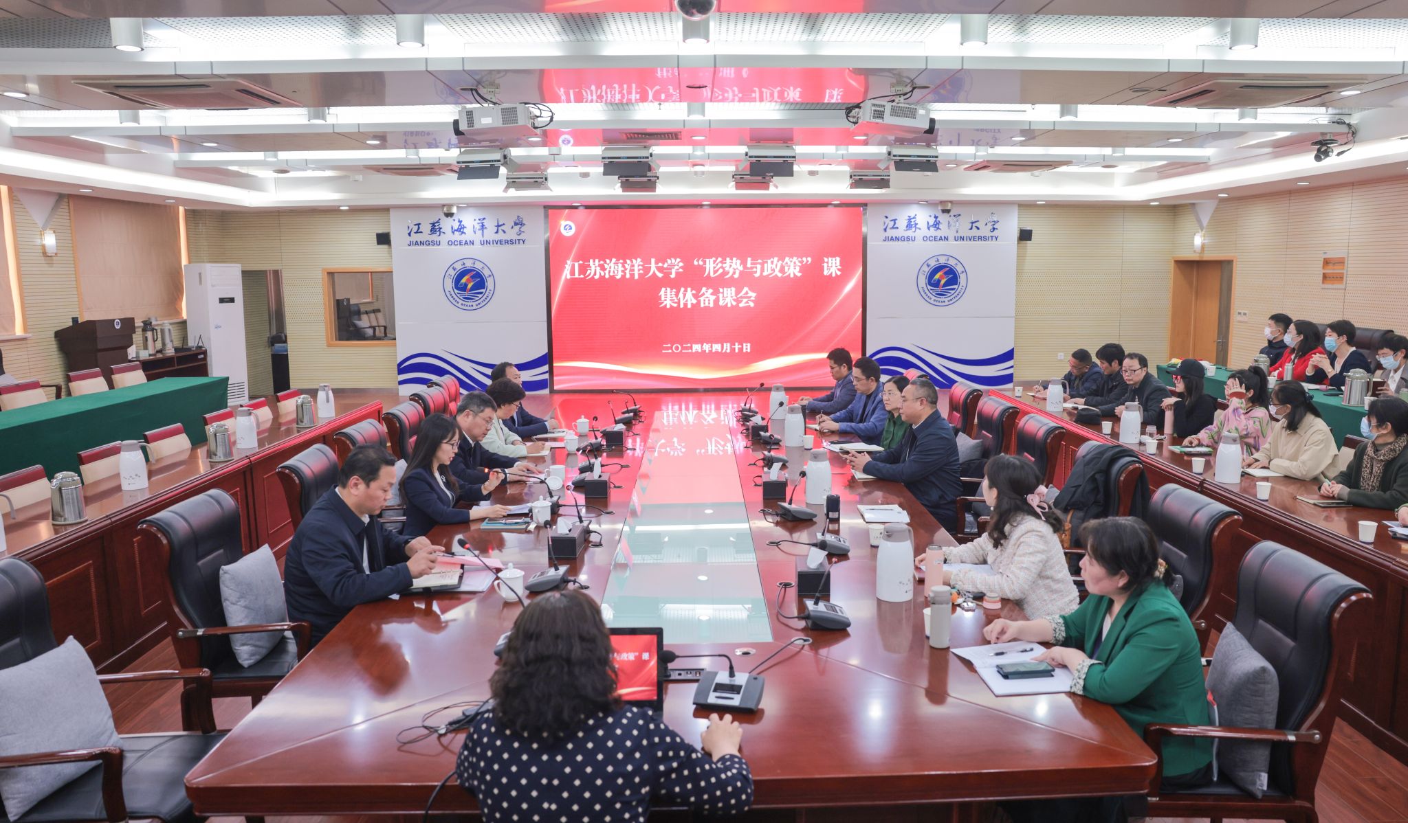 为了深入贯彻落实教育部《关于做好2024年春季学期全国高校“形势与政策”教学工作的通知》精神,加强对我校“形势与政策课”的教学指导与经验交流,4月10日下午,我校在会议中心东海厅召开2024年春季学期“形势与政策”课集体备课会。校党委书记许峰,校党委副书记李梅英,校党委常委、副校长金芙蓉,校党委常委、宣传部部长王波,校党委常委、统战部部长、党委办公室主任毛宝海,“形势与政策”课授课教师及我院全体教师共同参加备课,备课会由金芙蓉主持。