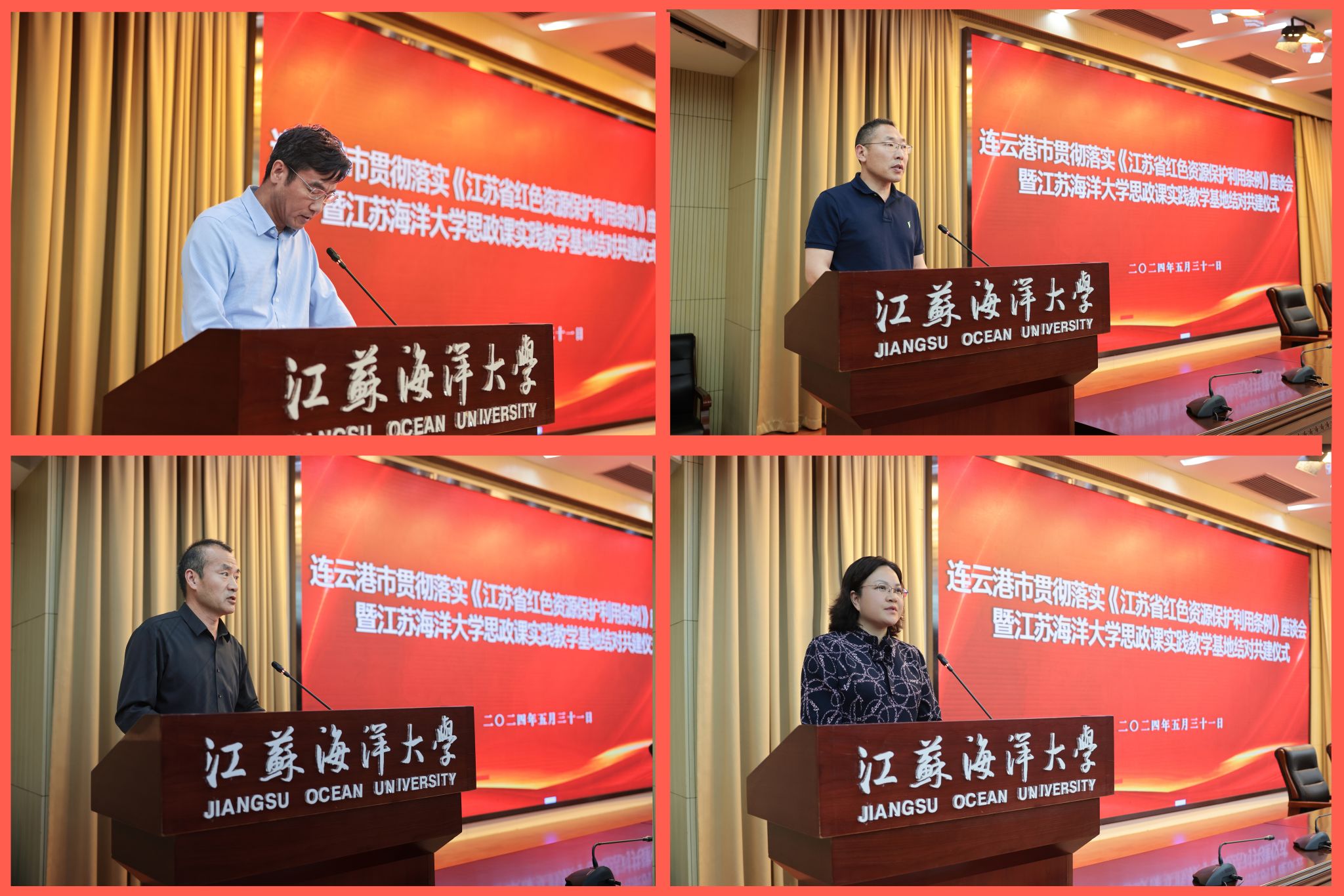 5月31日下午,《江苏省红色资源保护利用条例》座谈会暨江苏海洋大学思政课实践教学基地结对共建活动在我校会议中心黄海厅举行。校党委常委、副校长金芙蓉,省委宣传部宣传教育处(国防教育处)二级调研员陈辉,校党委常委、宣传部部长王波出席活动。活动由连云港市委宣传部副部长、市新闻出版局(市版权局)局长李武主持。连云港市相关职能部门负责人及连云港市国家级、省级爱国主义教育基地、国防教育基地负责人,我院全体教师及学生代表100余人参加了活动。