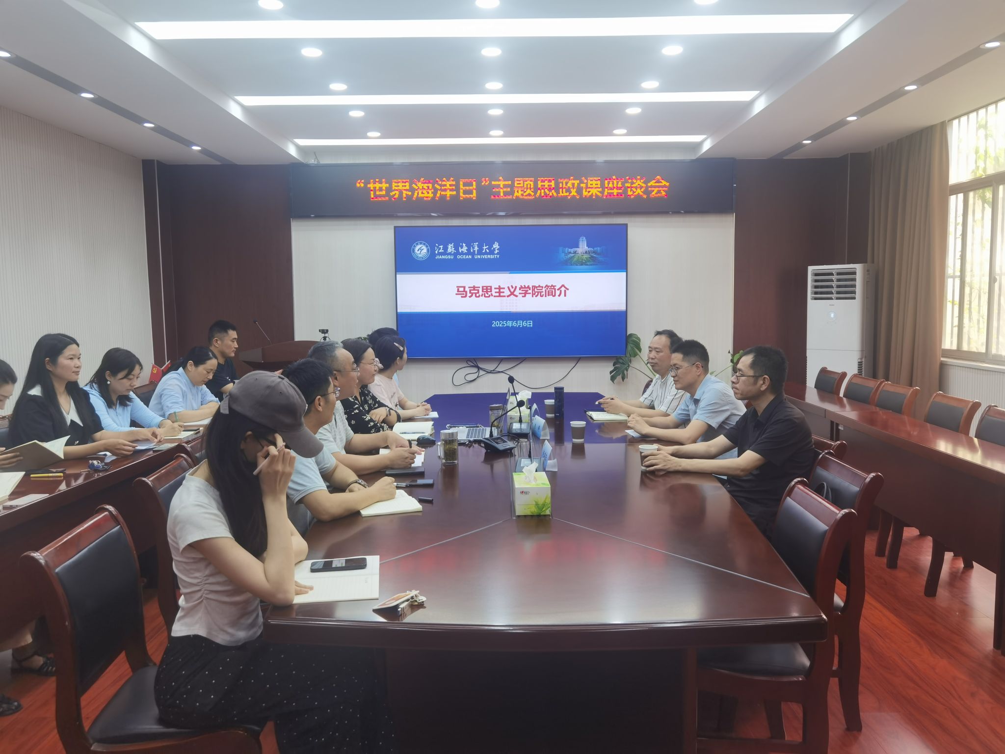 2025年6月6日,在第17个“世界海洋日”暨第18个“全国海洋宣传日”即将到来之际,我院在学院会议室举办了一场别开生面的“世界海洋日”主题思政课座谈会。会议特邀原《中国海洋报》首席记者,《中国自然资源报》融媒体中心主任、首席记者赵建东、国家海洋博物馆科研科普中心副主任朱辞作报告,与我院年轻博士共同探讨海洋生态文明建设与高校思政课教育的深度融合。校党委常委、宣传部部长王波出席座谈会,座谈会由院党总支书记韩振响主持。
