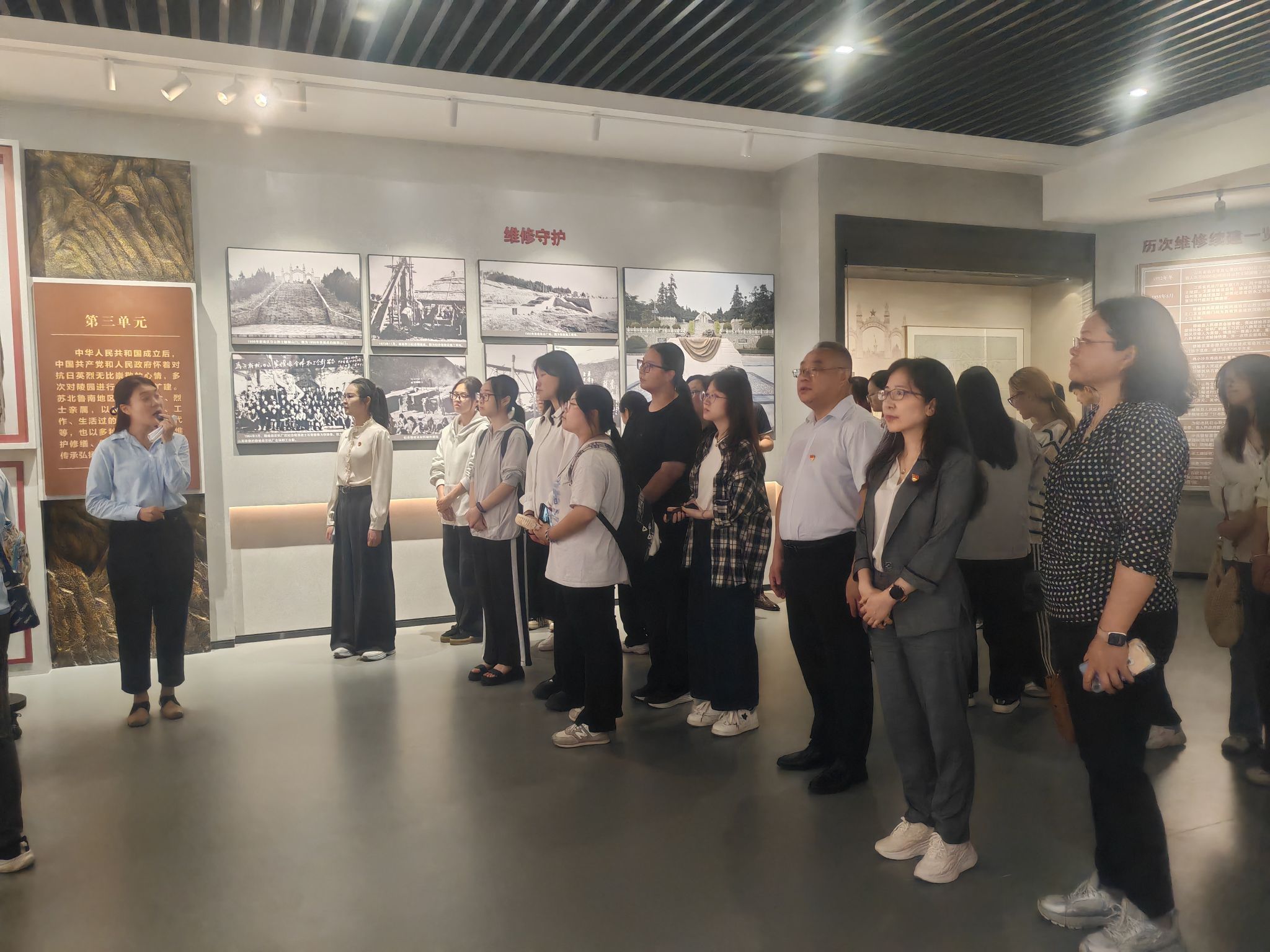 仪式结束后,师生集体参观了抗日山革命烈士纪念馆。在讲解员的引导下,大家认真观看历史实物和图文资料,重温那段烽火连天的岁月。大学生主动牵手小学生,师生之间跨越年龄互动交流,在共同学习中深化对抗战精神的理解。