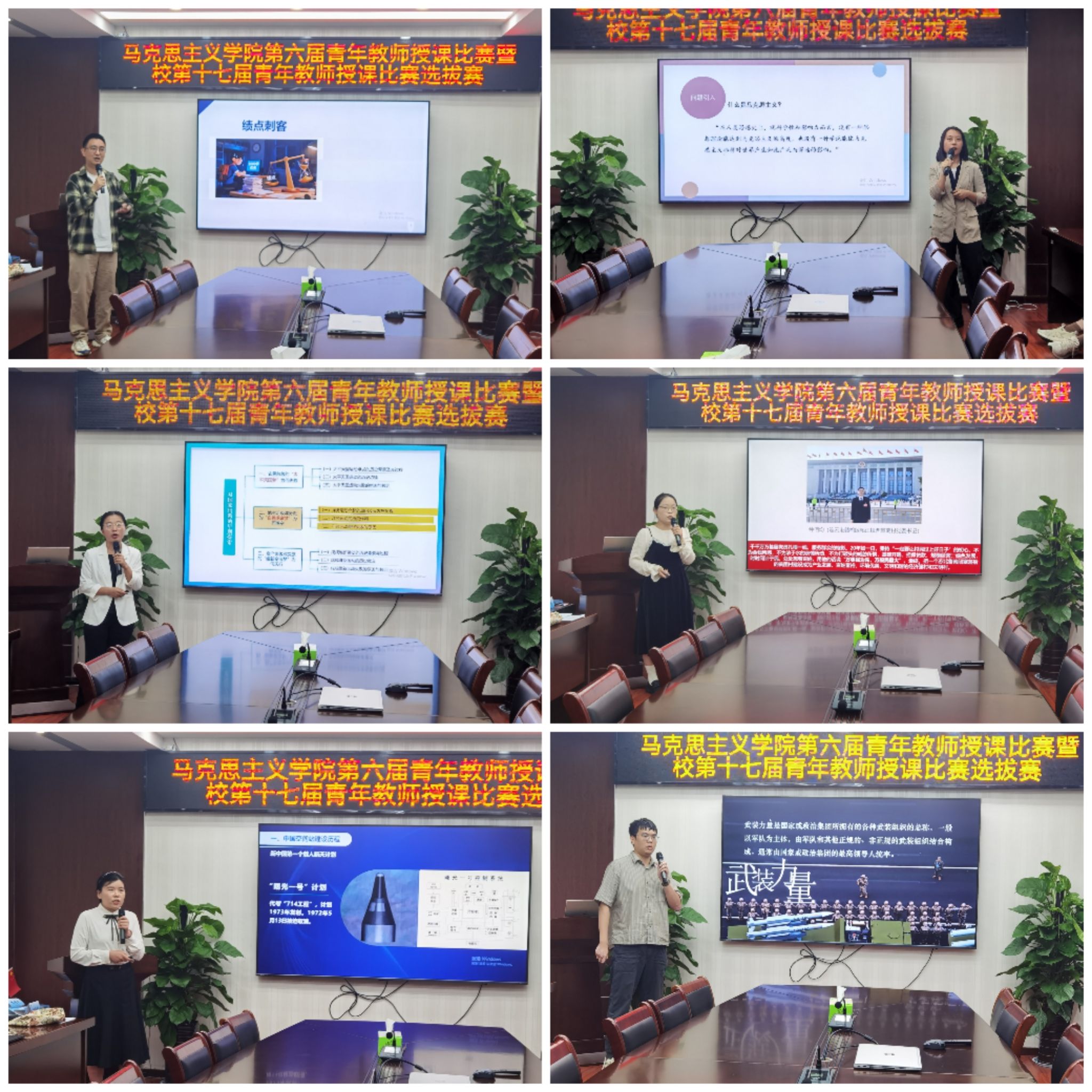 12位参赛教师紧密结合教材内容,自选专题进行了精彩的现场教学展示。老师们教学设计精巧,逻辑清晰,语言生动,充分结合现代教学技术手段,将深刻的理论阐述得深入浅出,展现了扎实的理论功底、丰富的知识储备和高超的课堂驾驭能力,获得评委及观摩教师的一致好评。